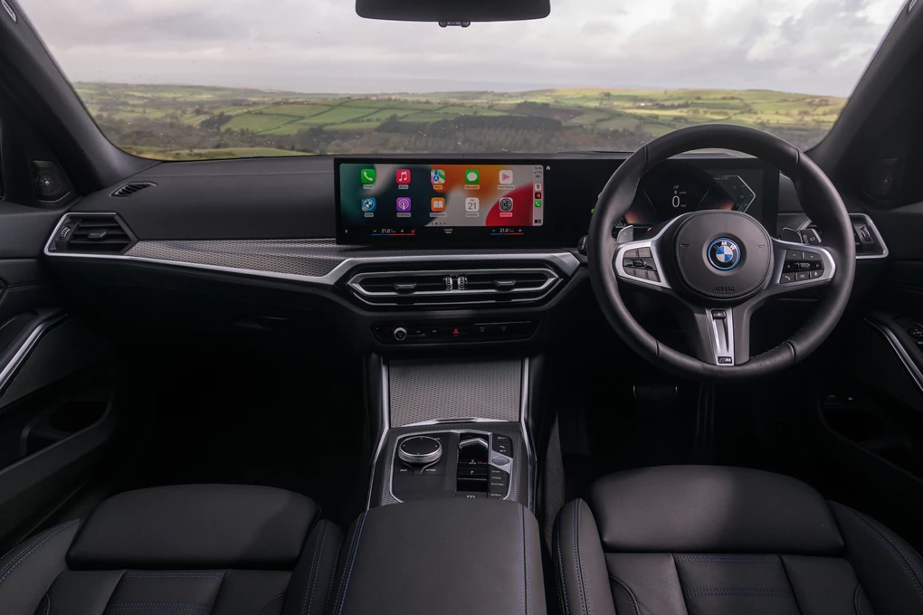 But here we’re trying the plug-in hybrid 330e that is an increasingly popular choice. Its 2.0-litre petrol-electric setup delivers 288bhp and 420Nm of torque, allowing for a 0-60mph time of 5.6 seconds. It’s available as a rear- or all-wheel-drive model, and once the battery is charged, BMW claims it can do 42 miles on a charge, allowing for a claimed 188mpg and CO2 emissions as low as 33g/km.
